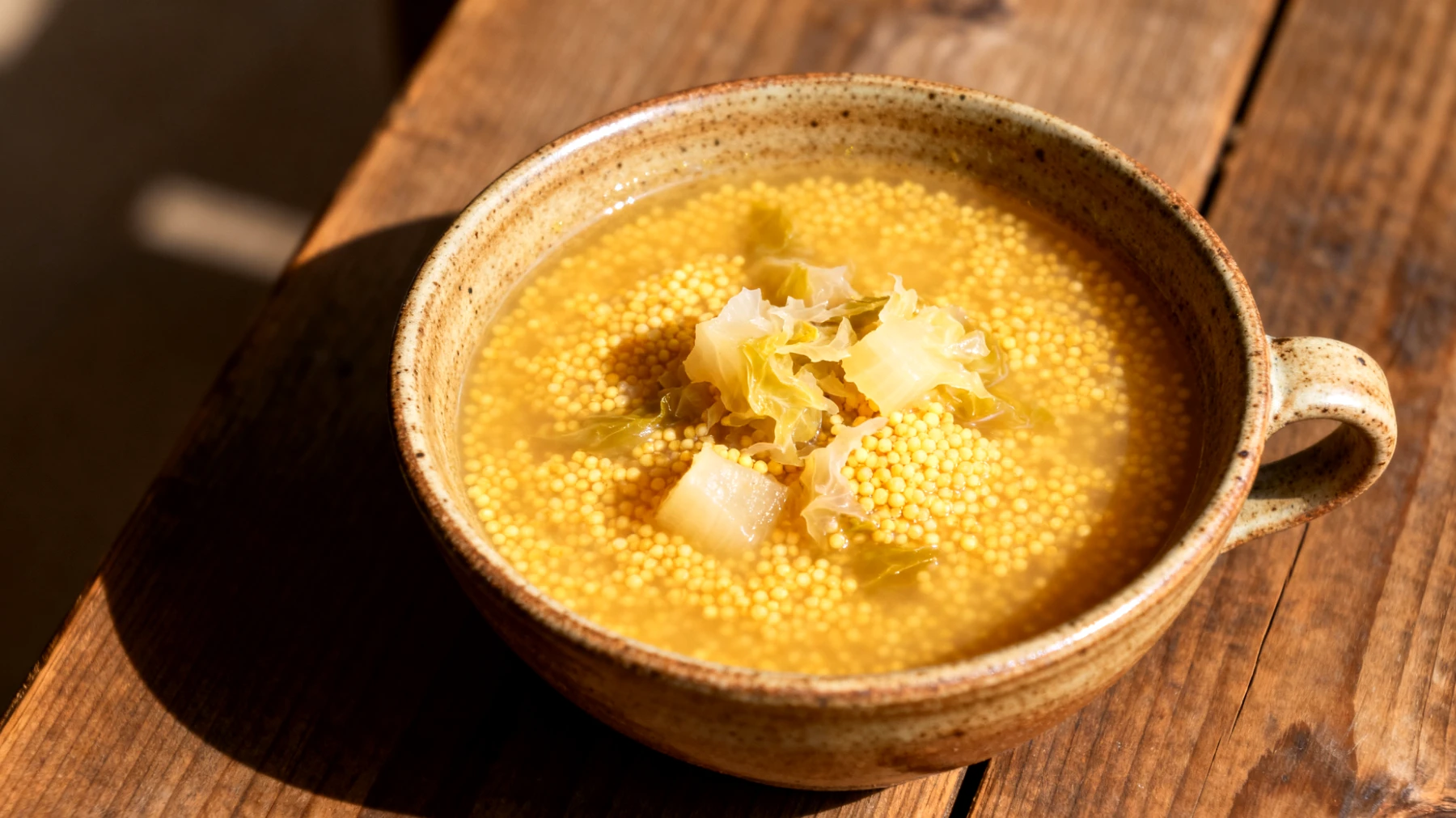 Questa zuppa rappresenta un esempio concreto di come la nutrizione moderna possa attingere da tradizioni millenarie: il miglio è effettivamente uno tra i cereali più antichi, coltivato da circa 10.000 anni, mentre la fermentazione alimentare accompagna la storia di tutte le culture tradizionali. Un piatto che rispetta i vostri tempi, nutre profondamente e dimostra che prendersi cura di sé non richiede sacrifici impossibili, ma scelte consapevoli e replicabili.